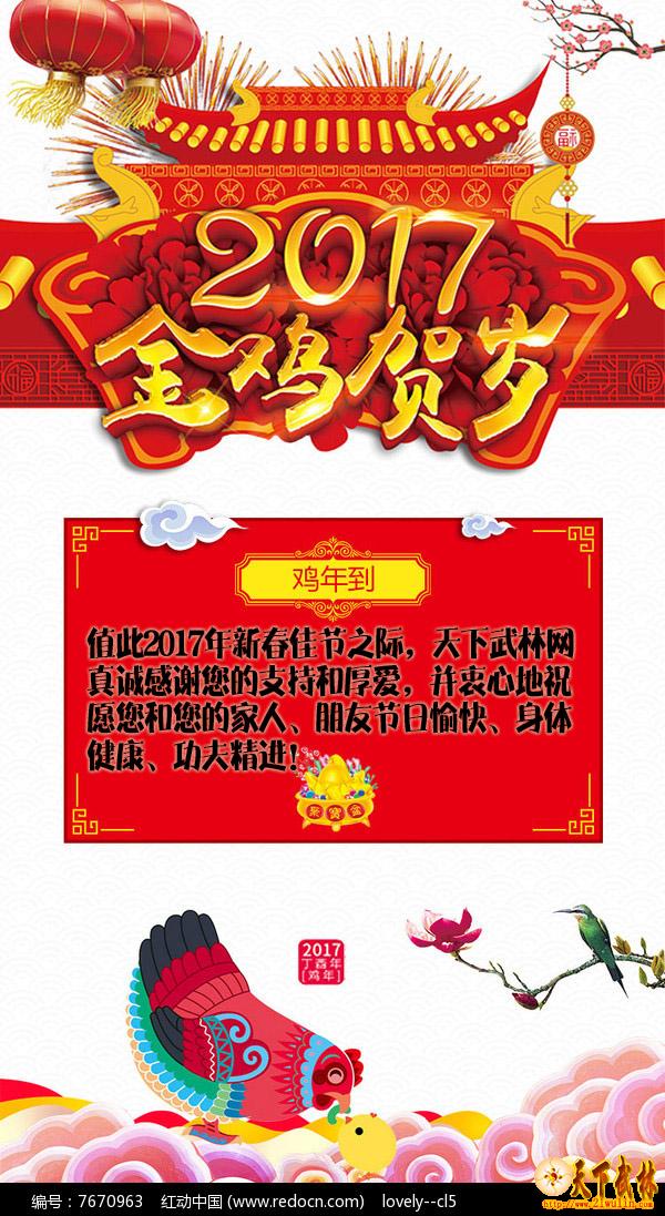 值此2017年新春佳节之际,天下武林网真诚感谢您的支持和厚爱,并衷心地祝愿您和您的家人、朋友节日愉快、身体健康、功夫精进!