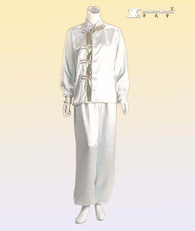 (偏襟)**偏襟起源于满族的旗装,外轮廓呈长方形,马鞍形领掩颊护面,衣服上下不取腰身,衫不露外,偏襟右衽以盘纽为饰,假袖二至三幅,马蹄袖盖手,镶滚工艺装饰,衣外加衣,增加坎肩或马褂。其造型完整严谨,呈封闭式盒状体,因此形象肃穆庄重,清高不凡,而独树一帜,突破了几千年来飘逸的塔形衣冠。时至今日,它对现代服装也有一定的影响。特别是随时代发展,经过加工曲线突出修长秀丽的旗袍,已经形成了汉民族的服饰代表,显示了东方女性的温柔与内涵,具有永恒存在的价值。偏襟的裁剪,产生了均衡的美感,体现了潇酒秀丽的审美情趣。微紧的腰部和两侧的开叉,恰到好处地表现了女性的曲线美。紧扣的高领下的盘花扣在整个服装上起到了画龙点睛的作用。每每看到这些工艺精细灵巧的服装,总是令人产生一种赏心悦目的快感。生活中,我们都有一种体会,每当穿上足以表现自己仪表美的时装时,一种称心如意快感油然而生,从而提高了生活的情趣,使我们精神焕发地投入到生活工作中去,这就是服装产生的审美价值。