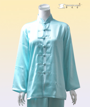 **宝贝说明(中华)**中华的款式简洁、朴素、大方,扣子采用布条砸制,仿对襟款式。面料通常采用棉加丝,透气性好,练功休闲均可穿着。袖口九分。