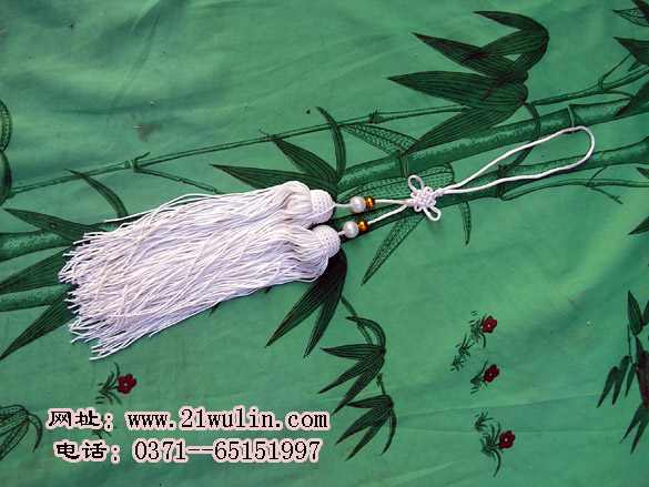 这种剑穗是比赛指定剑穗,优点:手感佳,舞剑时不易缠手,坠感佳,可以水洗。