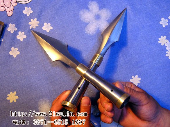本大枪头硬度韧性特别好,枪管两端双环铜箍,传统流线形造型,美观大方,全长约30厘米,每幅:70元(赠红缨子两片)