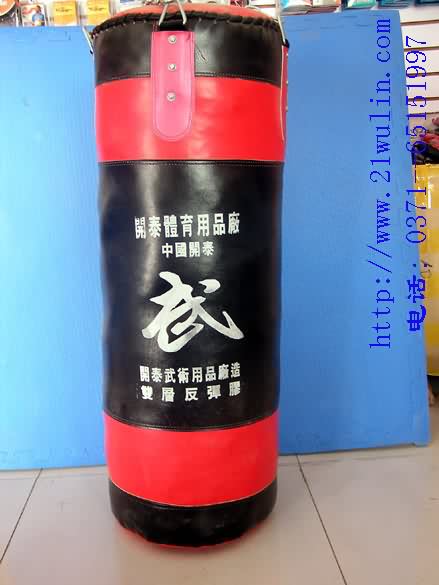 特点:并在里层装有柱心一个,更结实耐打,弹性好!不会因为长时间击打而变形损坏!上面配有粗铁链和铁环可直接挂上开始训练.