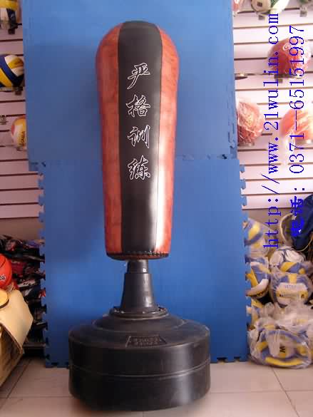 材质:击打部位采用优质皮革所制,里面为沙袋专用抗击打EVA垫圈海绵,下部底坐部分,用高强ABS成型,可装进沙子或水.