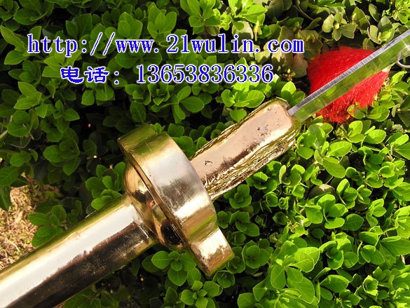 春秋大刀, 亦名“青龙偃月刀”,乃仿照三国时期关云长的宝刀而制。其结构由刀头、刀身、刀柄等部分组成。我们这款刀刀头是全部由不绣钢打造,铜制龙头刀口,护手刀尾全钢镀金色。刀竿不是普通的木杆,而是加粗的藤条!焊接无缝隙,全为一体,质量上乘,外观精美,是练习武术、锻炼身体的好器械,也是店堂陈设、个人收藏的佳品。