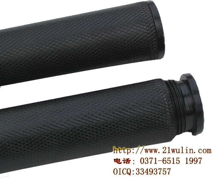 长度28厘米,链长18厘米和13厘米两种规格。直径2.5厘米,壁厚2毫米,前端缩口是一体的,后端尾帽是开螺纹拧上的,绝不会脱落。钢制轴承,铁链,链子是焊死的,是目前市面上最粗的链子,重一斤二两。 钢棍链端的空心销叫弹簧销,是45号钢淬火做成的,很结实耐磨。一般的实心销钉都是铜、铝、铁等稍软的材料做成的,这样容易在里面膨胀销紧。弹簧销是靠它本身的弹力,空心的销子有条缝,把缝夹紧一点打进去,然后销子会弹开撑紧,形成铆固。空心的不容易弯,理论计算太复杂,但搞金属加工的都知道这个结论。淬火钢耐磨性也要比铜铁等强很多,所以综合考虑下才用了弹簧销而没有用铁铆钉。那个弹簧销强度足够,如果力量大到把弹簧销拉坏,那么链子早就承受不住了;如果弹簧销磨损,那么链子已经磨损更厉害了。因为弹簧销是淬火钢,链子是铁制,这个位置可以保修,坏了厂家负责维修。