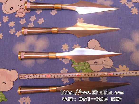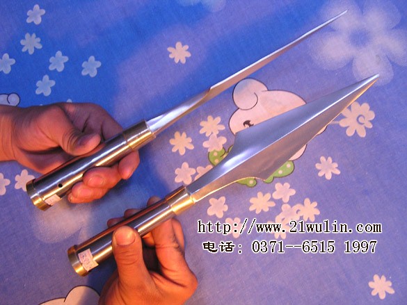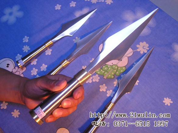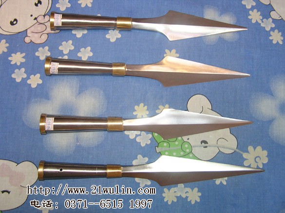 名称:不锈钢枪头(大号) 总长:35cm 枪尖长:20cm 重量:1.5斤 材质:不锈钢,双环铜箍 本大枪头硬度韧性特别好,枪管两端双环铜箍,传统流线形造型,美观大方,全长约35厘米,每幅:70元(赠红缨子两片)