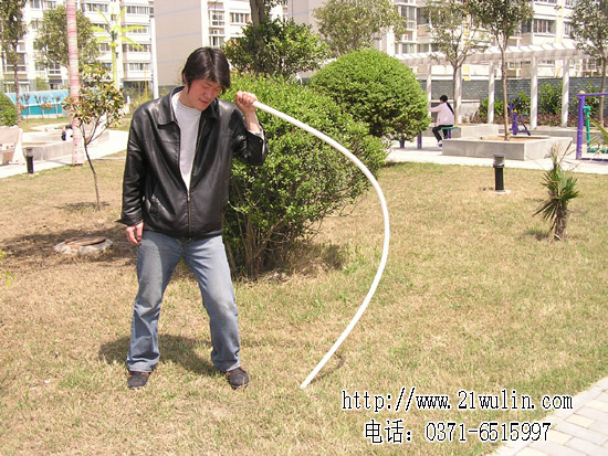 白蜡杆主要特点:坚而不硬,柔而不折,杆身弯曲不劈裂,柔韧性强,自身纤维密度稠,能承受较强的自然拉力!下图为白蜡杆弹韧性测试。