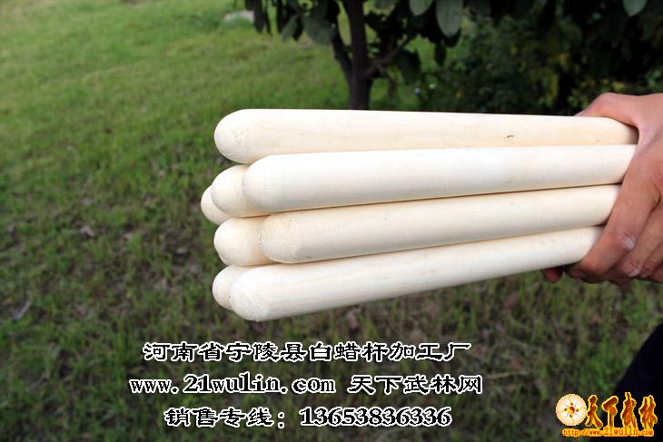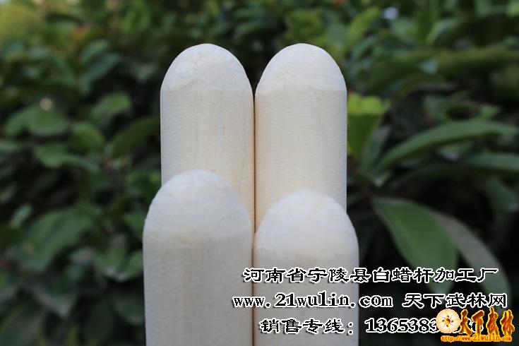 二、精加工武术棍系列介绍: 精加工武术棍系列是河南省宁陵县白蜡杆加工厂投资20余万采用日本进口高精度直线滚动导轨数控车床,选用优质上等白蜡杆为原材料,凭着一批敬业、经验丰富、技术精湛的生产队伍,做到产品不合格决不出厂,经高精度数控车床加工处量后,变成一条条洁白如玉、光滑锃亮、笔直成线的完美漂亮的武术杆,并充保持了白蜡杆本身所天然的"有弹性而折不断,有韧度却不变形,有力度而不震手"等柔而不折、坚而不硬的特色,是习武强身、参加大型武术比赛的好工具,也是店堂陈设、个人收藏的佳品。用过、比较过,才知道什么叫好武术杆(棍),力争做绝世好棍!纯天然选材,合理的锥度,握持舒适;专业的数控车床制作技术,确保光滑锃亮、笔直成线,河南省宁陵县白蜡杆加工厂,引领纯天然时尚,打造武术器械精品!