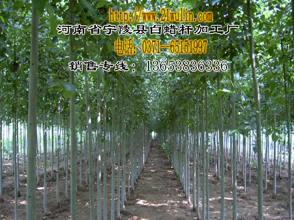 图10:河南省宁陵县白蜡杆加工厂所种植的大杆是由于当地其独特的土质、水质和气候地理特点,所在地阳驿乡有“白蜡杆之乡“之美称,自1995年应全国多位知名武术家的预约订购而专业种植的。精选河边20亩良田,自幼苗种起,进行专业种植管理,其间省农科院藤类植物研究所和宁陵县农技站的专家来种植基地进行参观指导,提出很多种植管理方面的宝贵意见本厂所种植的太极大杆自2004年十月首次砍伐以来,可谓:“十年长一杆”。来到种植基地你会看到一棵棵笔直挺拔、娉婷而立、从不旁逸斜出的白腊树林,笔直度可与高大的大乔木相媲美。其木质柔而不折、坚而不硬,具有“有弹性而折不断,有韧度却不变形,有力度而不震手”等特点。几年来,以其独特的品质、良好的信誉,在广大武术爱好者中树立了很好的口啤,深受国内外武术爱好者青睐。上图为白蜡杆冬季生长阶段