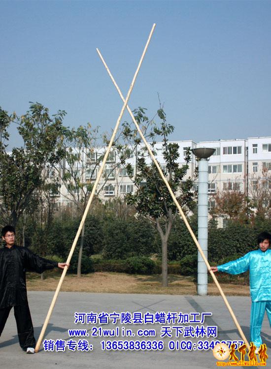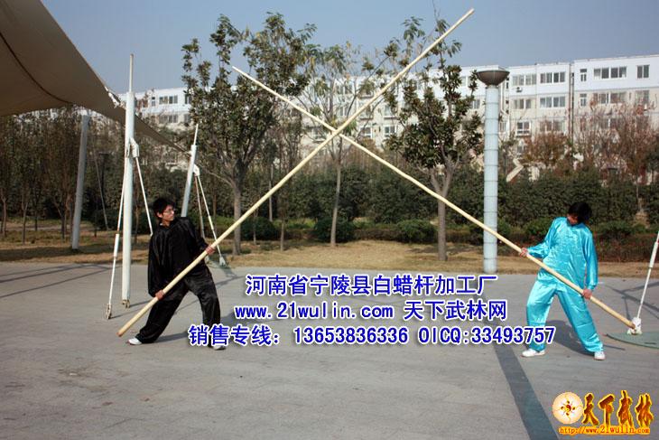 河南省宁陵县白蜡杆加工厂始建于1978年,位于素有“白蜡杆(条)之乡”美誉的豫东平原宁陵县阳驿乡,由于其当地独特的土质、水质和地理气候特点,当地人民创造性地发展种植了白蜡杆,用于防风固沙,防止水土流失;目前宁陵县白蜡条(杆)种植面积20万亩以上,为“宁陵三宝”之一,并被授予“全国最大白蜡条(杆)生产基地”称号,通过“国家地理标志产品保护”认证。 白蜡杆是天然绿色灌木丛生植物,它通体洁白、坚而不硬、柔而不折,杆身可弯曲到180度不劈裂,自身柔韧性强,纤维密度稠,有较强的自然拉力,在干燥的地方不劈裂,在潮湿的地方不变形,其弹性、韧性是其它木质不可比拟的,属绿色、天然、独特、稀有的特产,是加工武术器材及各种工具的理想天然原材料,深受国内外武术爱好者青睐;河南省宁陵县白蜡杆加工厂以“传统的工艺和先进的技术”为动力,充分利用这一独特资源的优势,把白蜡杆有弹性而折不断、有韧度而不变形、有力度而不震手等特性溶入技术开发中去,大胆采取高温熏蒸和现代工艺相结合的办法,彻底杀死深藏的蛀虫,精挑细选,精心加工后的杆子光滑锃亮、笔直成线。 河南省宁陵县白蜡杆加工厂年加工各类白蜡杆在50万根以上,在用做武术器械中长年与各类武术院校及全国知名武术家建立良好的合作关系,宁陵白蜡杆武术棍(枪)的市场占有率在60%以上,其中长3至5米白蜡杆为太极大杆(抖杆)、大枪等训练表演指定唯一专用器械,2006年10月邀请我国著名武术家、《中华武术展现工程》总监---武世俊大师为本厂形象代言人、技术顾问,充分体现了我厂的雄厚实力和优良品质!引领纯天然时尚,打造武术器械精品是我厂永恒的原则!在工程项目中与青藏铁路建设指挥部、河南物探院、河南煤矿机械厂、河南高速、郑州铁路局等厂矿企业建立了良好的合作关系。现阶段我厂在原材料、加工工序、规模、数量全国一流,拥有长期稳定大量的货源;我厂将本着诚信、公平、互动、双赢的原则,向全国诚招代理商(经销商),真诚希望您的加盟! 河南省宁陵县白蜡杆加工厂以“质量第一、诚信为本、艰苦创业、开拓进取”为指导思想,以“丰富独特的资源和廉价的技术劳动力”为优势,以“传统的工艺和先进的科学技术”为动力,以“博大的胸怀和诚实的科学态度”为基础,热情欢迎国内外客商来我厂洽谈合作。 河南省宁陵县白蜡杆加工厂欢迎您! 了解请点击:百兵之首 稀世珍杆---长四米(丈二)以上大杆子(白蜡杆)介绍