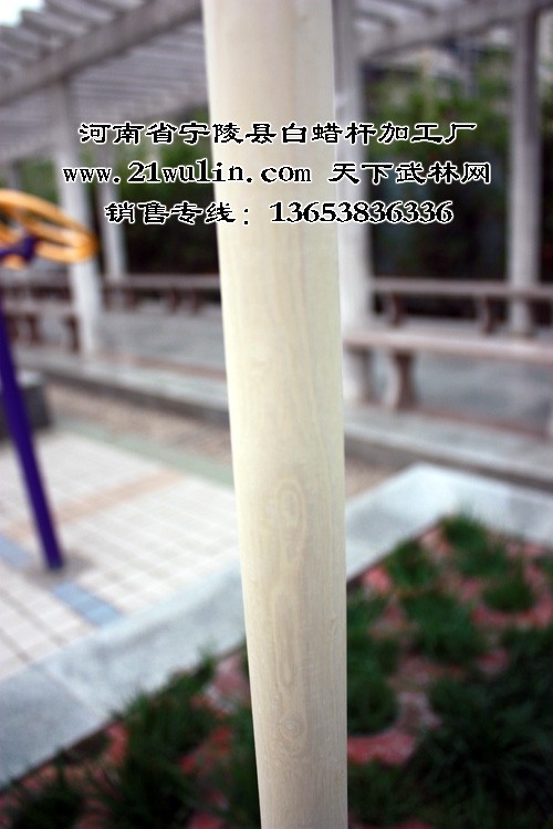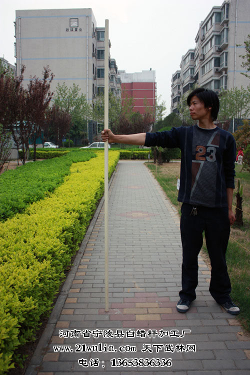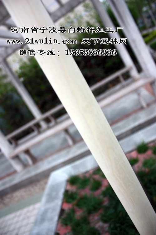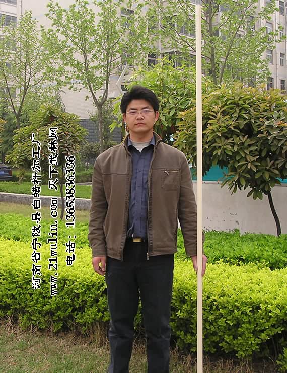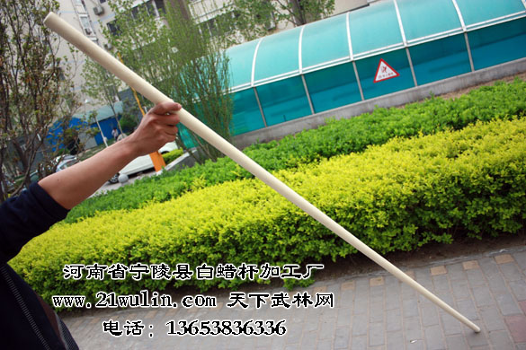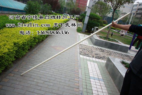 河南省宁陵县白蜡杆加工厂年加工各类白蜡杆在50万根以上,在用做武术器械中长年与各类武术院校及全国知名武术家建立良好的合作关系,宁陵白蜡杆武术棍(枪)的市场占有率在60%以上,其中长3至5米白蜡杆为太极大杆、抖杆、大枪等训练表演专用器械,独家生产的选用整段实木为源材料,全为一体、近乎正圆的纯实木实心太极球系列产品更是风靡武林,已有十多位武术名家在各类武术教学影片讲解演练中使用本产生产的武术器械,充分展示了我厂产品的一流品质。2006年邀请我国著名武术家、《中华武术展现工程》总监---武世俊大师为本厂形象代言人技术顾问、“第一、二届世界传统武术节”、“2007功夫之星全球电视大赛”为国家规定套路的棍术和枪术比赛专用器械、2008年春节晚会舞台上少林弟子使用本厂的武术棍,高难度的表演了“人在棍上翻”的动作给观众留下了深刻的印象,充分展现了白蜡杆坚而不硬、柔而不折的优良品质和我厂的雄厚实力!