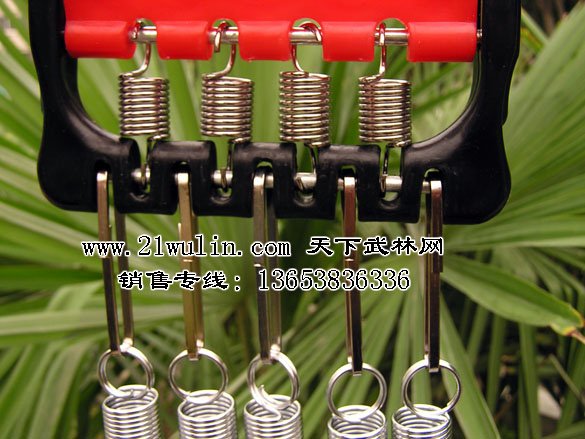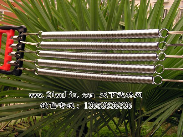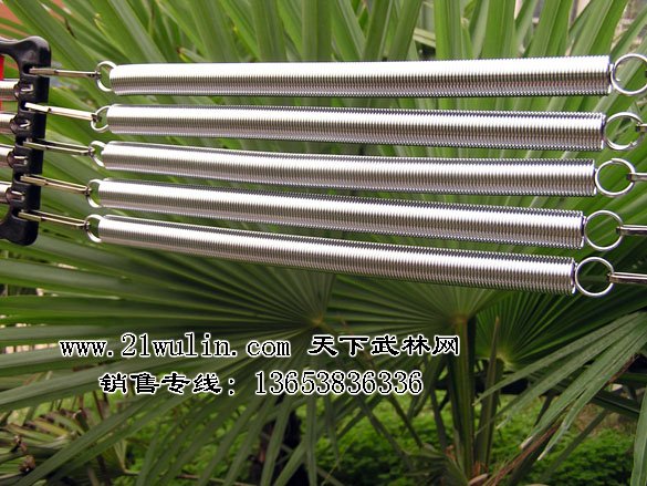 拉力器5根弹簧可以根据人需要自由调整,使用前先将弹簧与手柄的连接扣理顺,并仔细检查各部分是否安全。