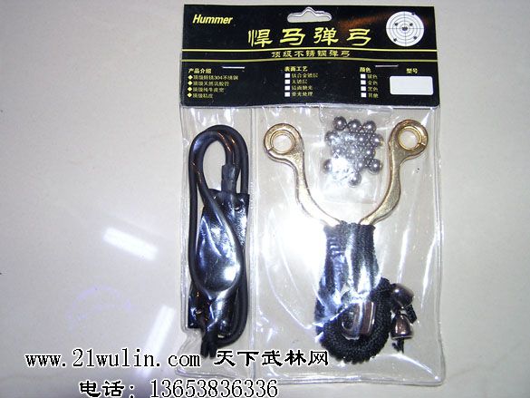 品牌:悍马弹弓 弓门内宽45mm 开口间隙1.2mm(电脑精密线切割开口,表面极其平整光滑) 净重120克(裸弓重量)厚度8mm材质:304不锈钢+锌 2009年悍马弓正式诞生,弓形饱满圆润,弓体采取人体工学设计,契合玩家手型而设计的弓臂持握感觉极佳,提供了很好的射击稳定性和防滑性。高品质9芯伞绳绕制弓柄,提供了最佳的手感和耐用度,这款弹弓是目前专业弹弓玩家选择最多并广受好评的一款经典弹弓。体积小,装在衣服兜里即可,随时取用。 色彩有钛金色,纯不锈钢色 配件:悍马弹弓一把(成品弓高品质伞绳绕制弓柄,配有弓门防滑套,合金绳松,伞绳封扣金属吊坠),专业超高速弹弓皮筋一副,钢珠一包,专业产品外包装(中英文产品说明) 纯牛皮弹子兜皮筋采用乳胶管产品特点: 1、弓门采用人体工学设计,提供了更舒适的持握手感。 2、独特的开口部位解决了传统正下方方开口的弊端。 3、标准的弓形适合165-190cm身高的弓友使用。 4、独特优化设计的弓门极大得降低了钢珠打弓门的几率。 5、弹弓整体高抛光,达到8k镜面效果。豪华精装版:弓体绕伞绳,金属装饰件。