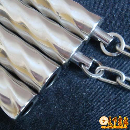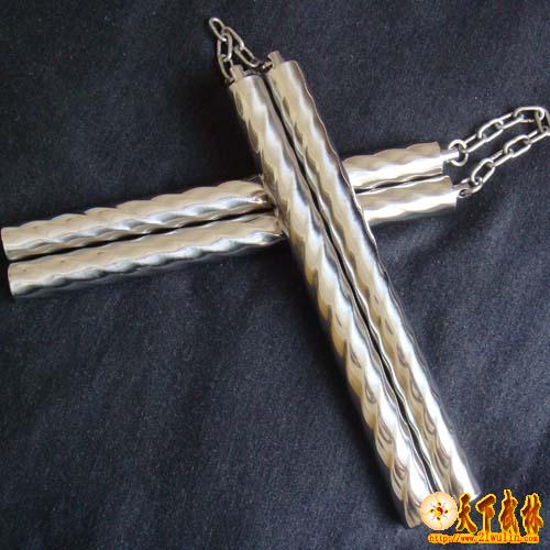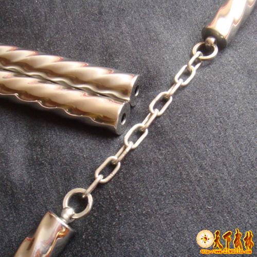 名称:旋风2号螺纹双节棍-300克 材料:201不锈钢 规格:28-18-28CM 棍径:25MM 棍壁:1MM 重量:300克 发声:悬挂发声 原 价:70元 现 价:55元 配送:无