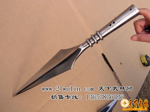 全为一体纯不锈钢枪头,中间没有经过任何焊接,是整个纯不锈钢柱体经数控车床磨制而长,经久耐用、超级结实,外观造型美观,线形感强,长40厘米,重两斤多。