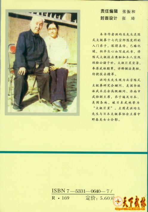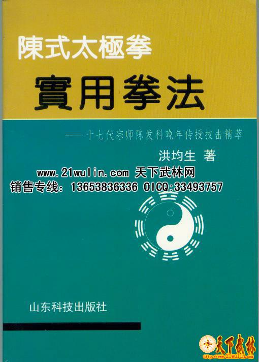 第二版 香港银河出版社出版 《陈式太极拳实用拳法》 - 作者简介 《陈式太极拳实用拳法》作者洪均生先生,系河南禹县入,自幼随父在京。一九三零年因病于京从陈发科先生习拳,随师十五载不辍,身体强健,功底深厚。松圆缠绵、缜密雄浑,颇具师风。一九五六年春,自济南赴京进一步深求陈式技法,蒙师一一试验指点,尽得要旨。洪均生先生问师能否按此法演练,答之日:“可”。是已,他返济后即据师试验每一动作之多种技击用法,揣摩其奥妙,复与学生、拳友一一交手试验,深悟其理精法密,遂将师授之实用技法,融贯于套路之中,在济南传授,从学者日众。洪均生先生颖悟过人,博览强记,通音律,懂诗词,文武兼备,善予思考,对陈式太极拳研究既细且深。教拳则循循善诱,能阐明哲学啄理,讲求科学方法,结合劳动习惯动作,就近取譬、他学肯易领悟:又现身说法,亲与学生试验,使学者如步八一座取之下竭的宝库之中,越学越深,越学越爱,有欲罢不能之感,确是一位难得的名师。