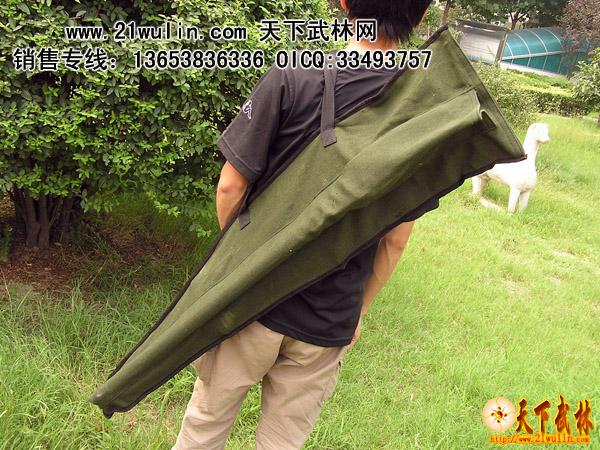 极品折叠式全不锈钢彩云春秋大刀E型: 帆布携带包,图为携带时的全景