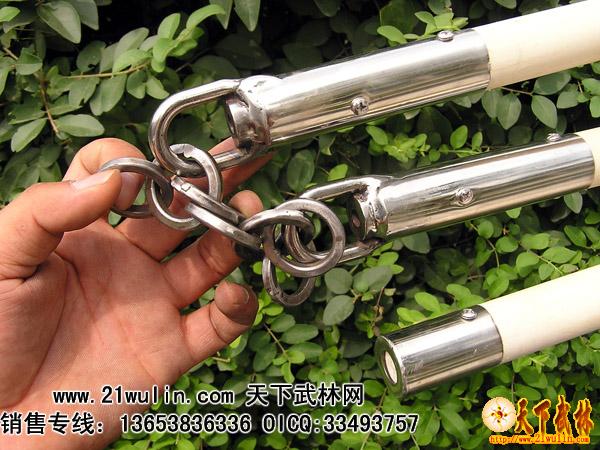 极品白蜡杆三节棍:特殊的不锈钢加厚链子,牢固无比。