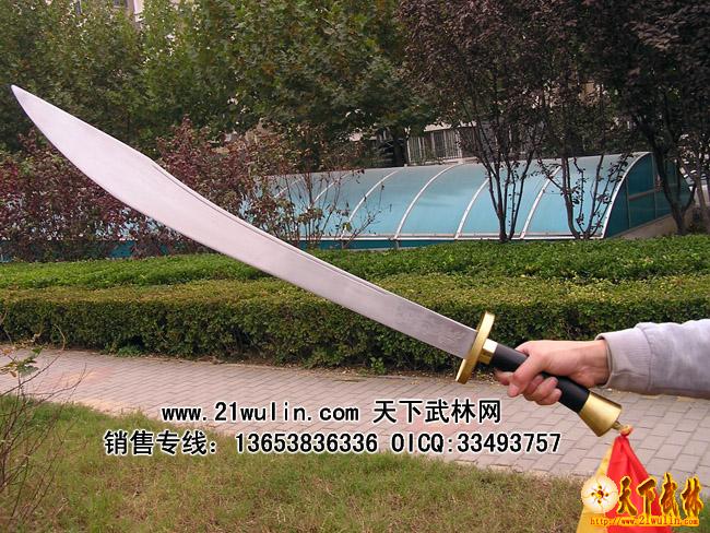 高碳钢加重型硬单刀:刀柄最厚4毫米,最薄1厘米。纯铜装护手。