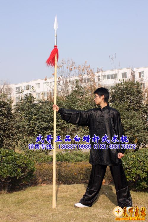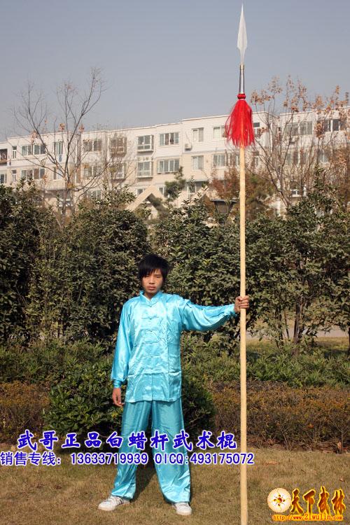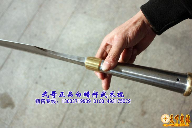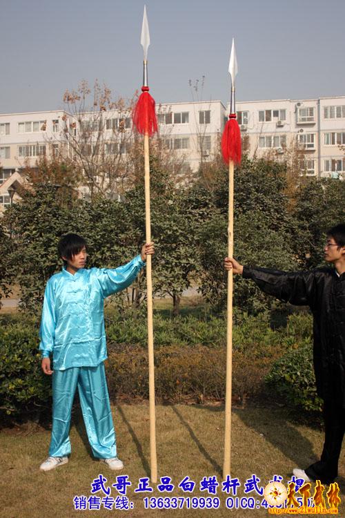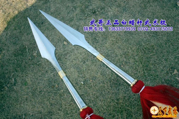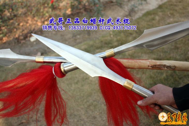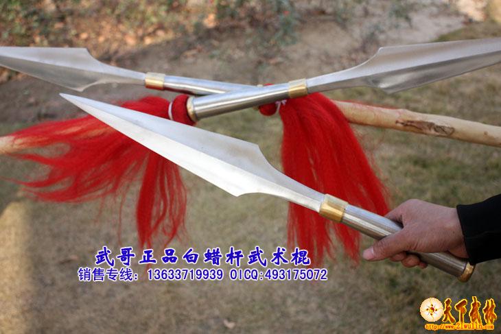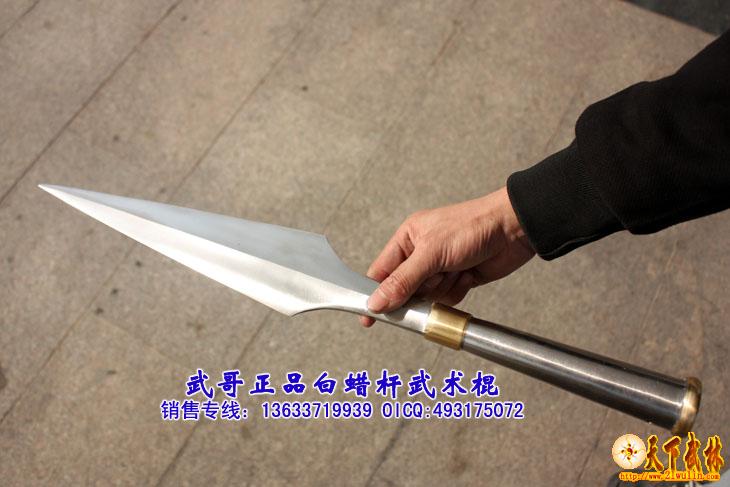 | 大枪是一种刺兵器,杀伤力很大,长而锋利,灵活快速,取胜之法之多,其他兵器难与匹敌,有“百兵之王”的美誉。枪杆采用传统型白蜡杆,两头自然粗,大头直径约3.8--4.5厘米,小头直径约3.0--3.5厘米,成圆锥形,光滑锃亮、笔直成线。大枪头全长50至55厘米,纯不锈钢材质,传统流线形造型,美观大方,硬度韧性特别好,枪管两端双环铜箍装饰,永不生锈!