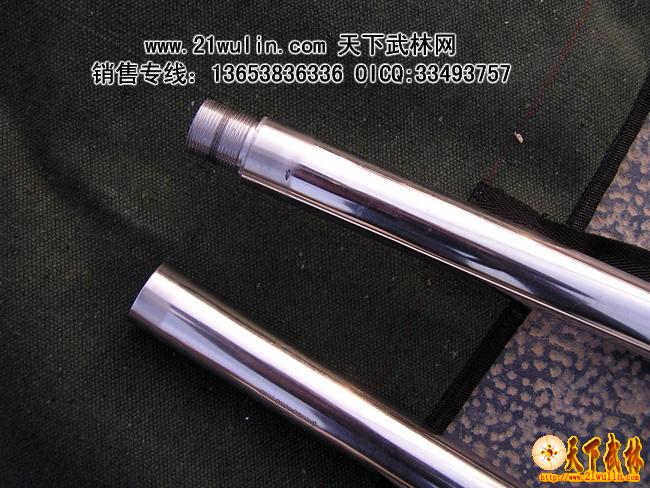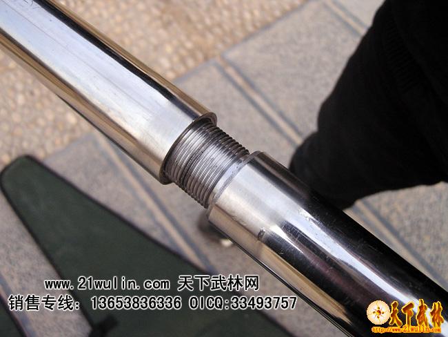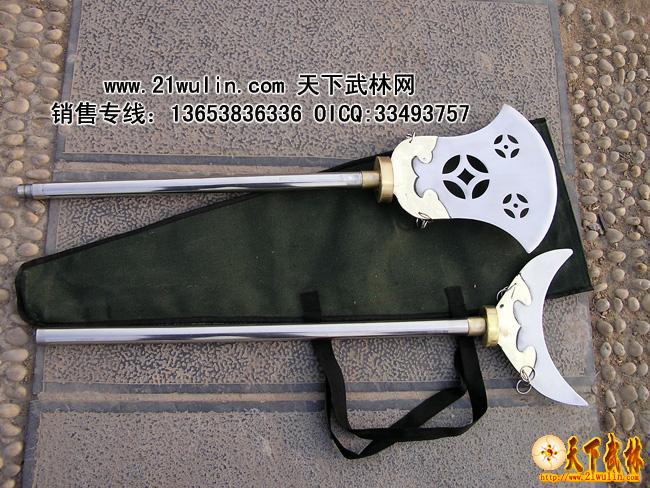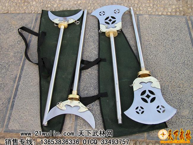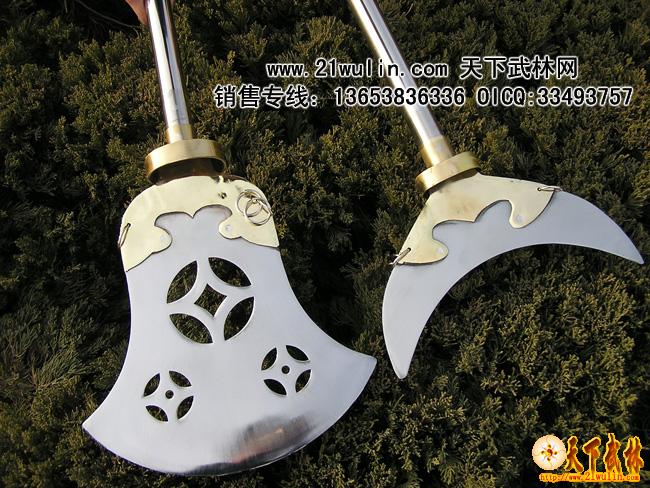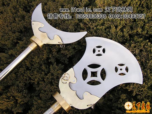 月牙铲B型采用不绣钢材质永不生锈,铲杆中间打断,分为两节,每节用套丝固定牢,铲头和月牙分别镶嵌纯铜护边,铲头上面有三个古钱眼造型,做工精细,外观漂亮,彰显大气,两端加厚纯铜护手,美观牢固,月牙做微开刃处理,铲的两头做配重处理,重心平横准确,分量适中,赠送帆布包一个,携带方便,本款属市面高档铲,是习武健身的好器械,也是店堂陈设、个人收藏的佳品。