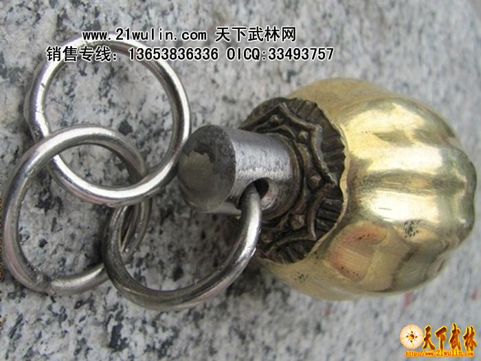 纯铜流星锤:顶部护档铸有精美对称图案,尾部连接三个钢环,非常牢固,标准重量尺寸,绝对正品!