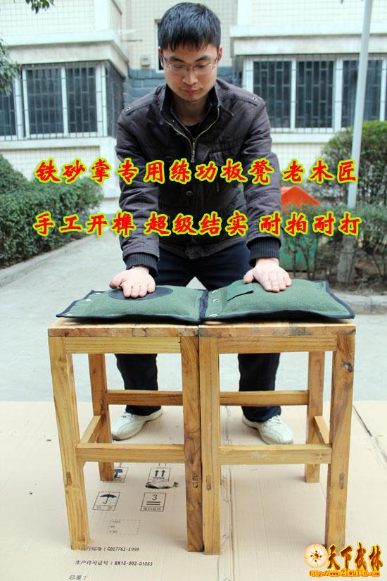 | 百日速成铁砂掌,专用练功沙袋架/练功凳,采用上好木材,在原练功凳基础上加厚凳面,做工扎实,耐打,高度可根据客户身高定制(购买的时候请告之凳高度,如果无要求,一律按传统默认高度65CM,凳面规格40CM*40CM),重量十多斤,厂家直销,大量现货。老木匠全手工制作,质量绝对一流,耐拍耐打。
