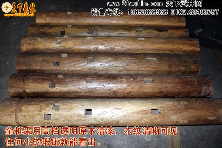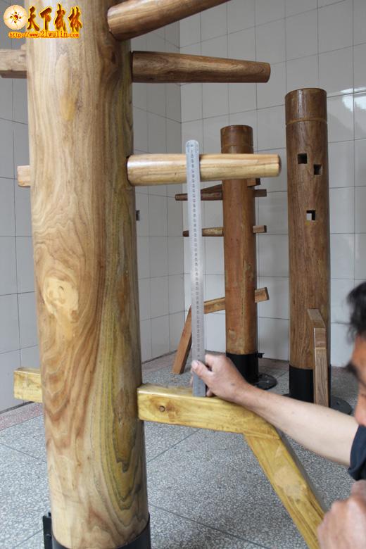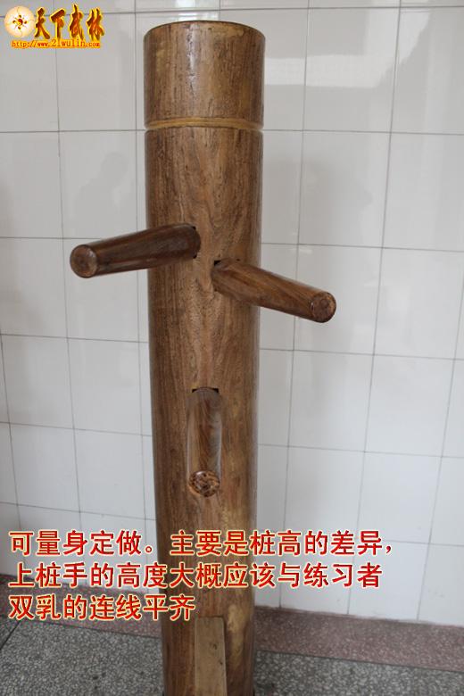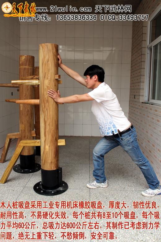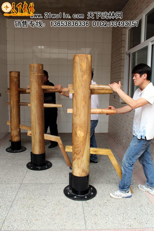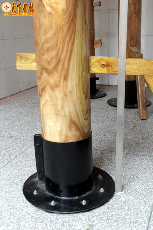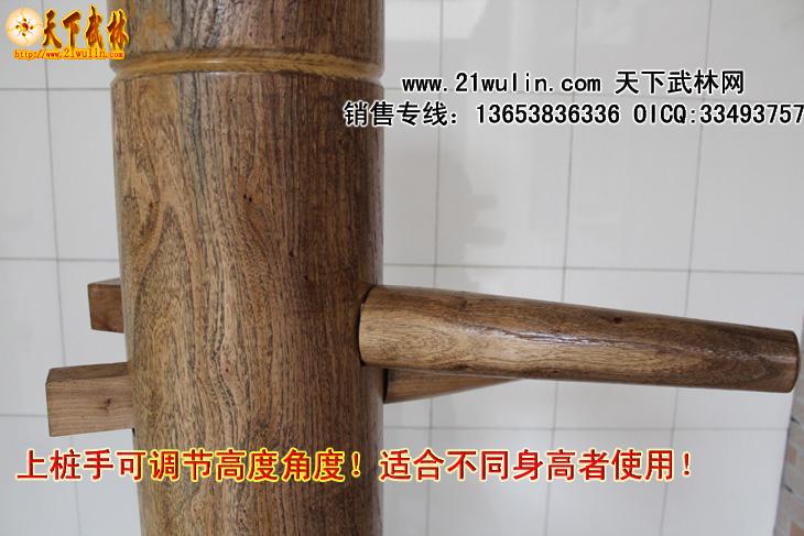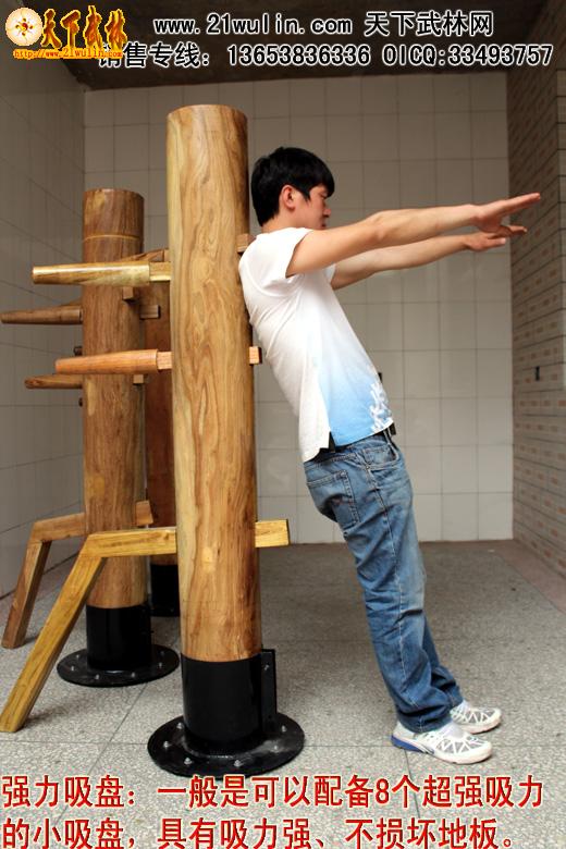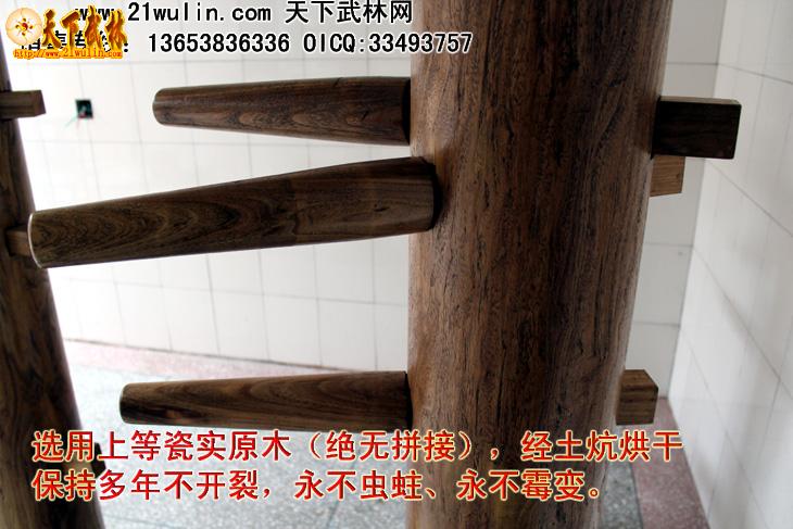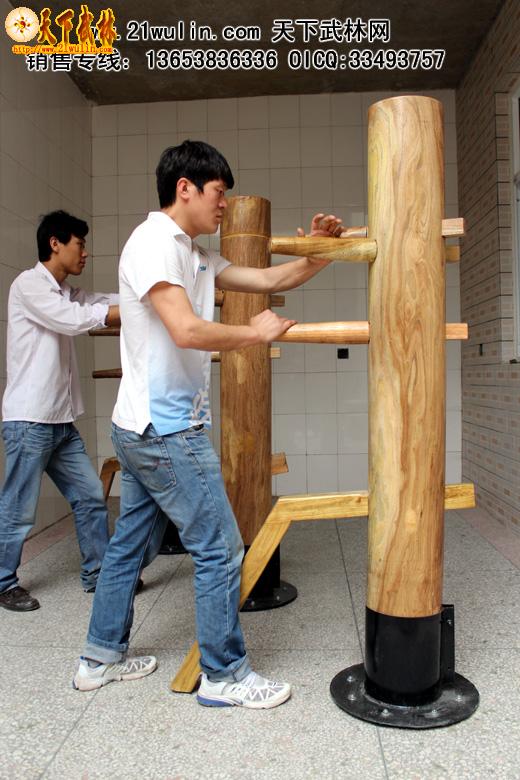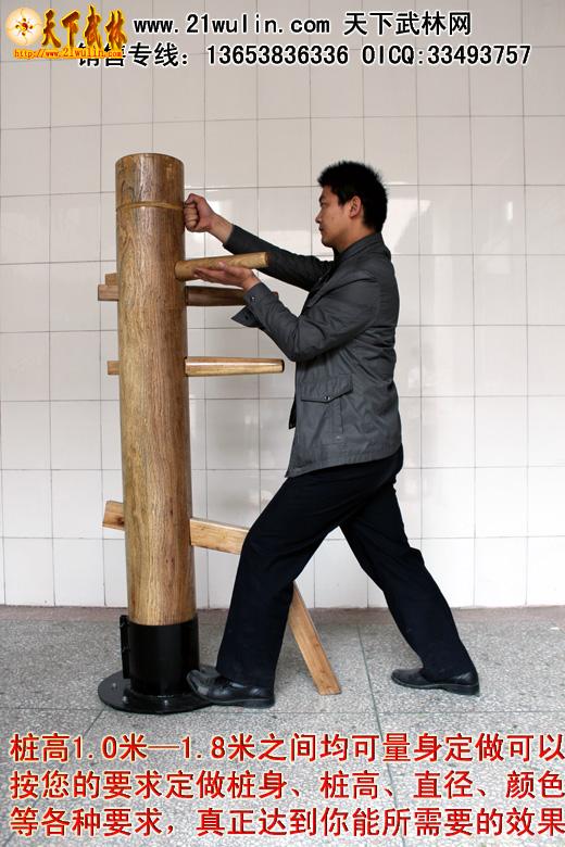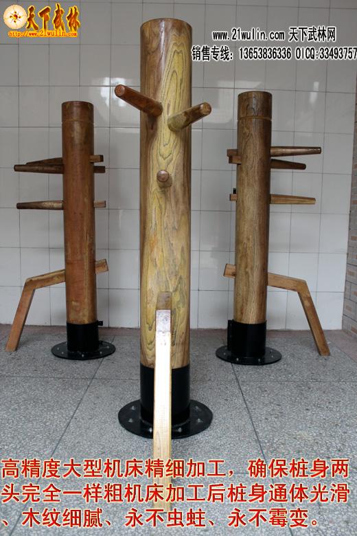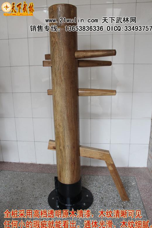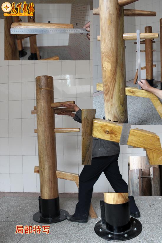 立柱式木人桩均由野生硬质木材(优质的槐木和榆木)精制而成,所有木材均经过微波干燥杀虫设备彻底烘干和杀虫处理,产品保证不开裂、不变形、不虫蛀。其造型美观,工艺精良,是武术爱好者的首选器材。木人桩是武术爱好者的练功对手和靶子,特别适合单人练习,能使使用者功力增进迅速,命中率和击打份量明显提高。是单人练功的必备器材。立柱式木人桩适用于地方狭小的室内安装,四角用膨胀螺栓固定在地面上。