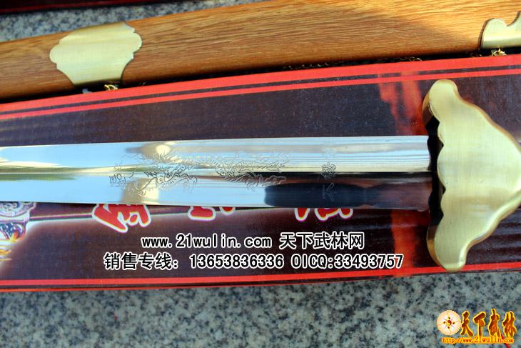 凹槽不锈钢仿古剑 采用优质不锈钢材质 锻打而成 采用传统手工 工艺打磨制作 剑身锋利 刃性极佳 其剑身有一条明显的凹槽 剑鞘采用进口红木鸡翅木木材 具有很高的收藏和观赏价值