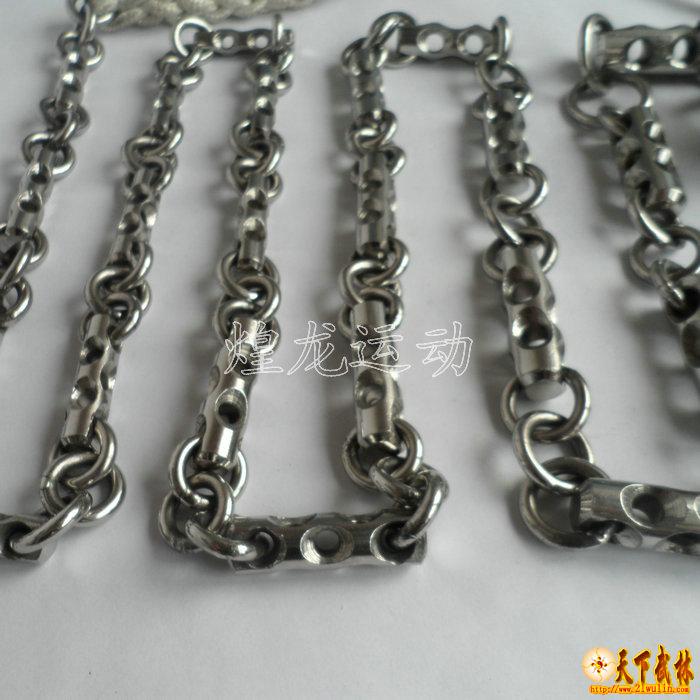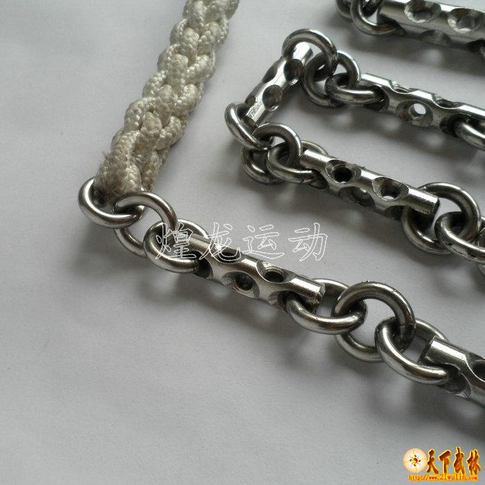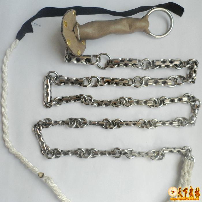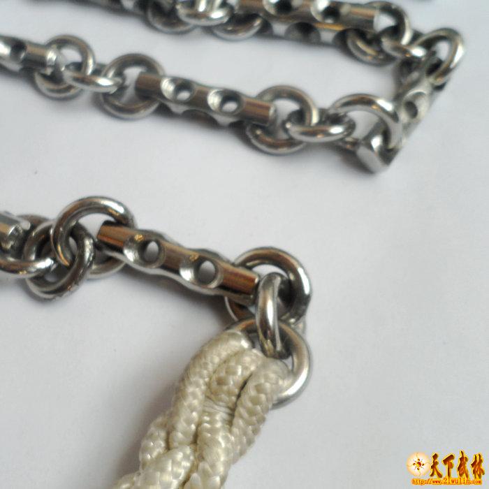 【特点】此款是不锈钢链条,高度抛光。手感光滑顺溜,鞭把采用纯牛皮精工缝制而成,做工考究,吸汗防滑结实耐用!鞭梢使用的尼龙绳,在甩起来声音清脆响亮!
