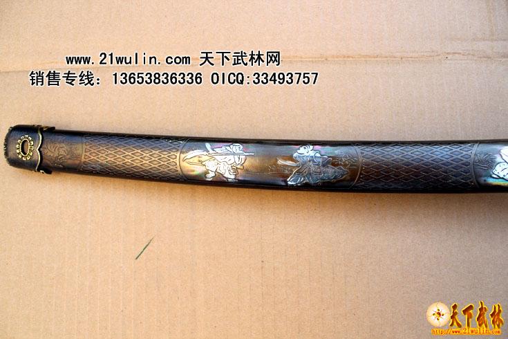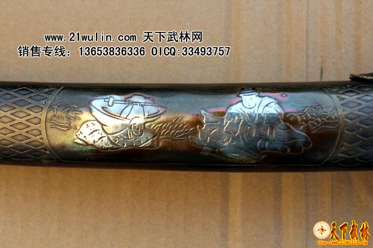 规格:全长105CM 柄长28CM 刃长72CM 鞘长77CM 厚0.7CM 宽3.18CM