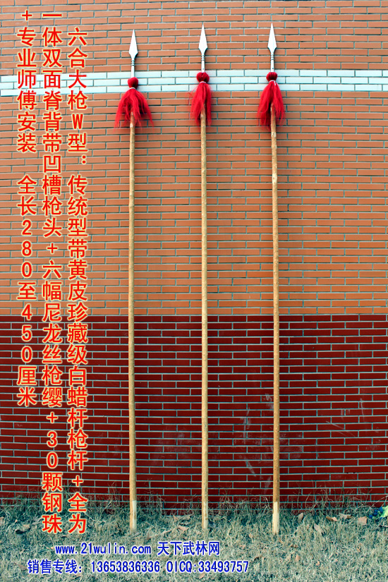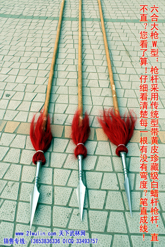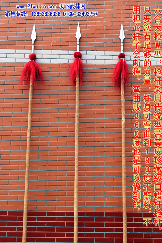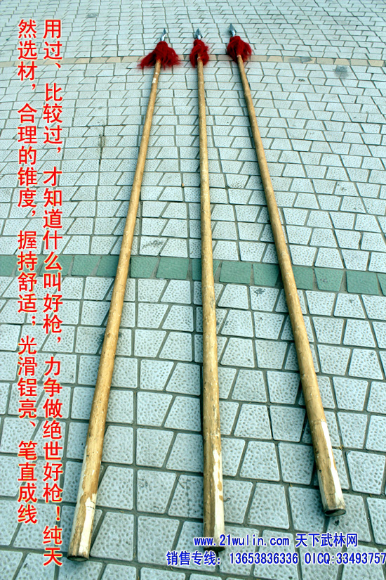 1、枪杆:杆采用传统型带黄皮珍藏级白蜡杆为枪杆子,两头自然粗细,成圆锥形,笔直成线,杆身弯曲不劈裂,柔韧性强,自身纤维密度稠,能承受较强的自然拉力。在干燥的地方不劈裂,在潮湿的地方不变形,其弹性、韧性是其它木质不可比拟的,为最佳武术长器械配杆。