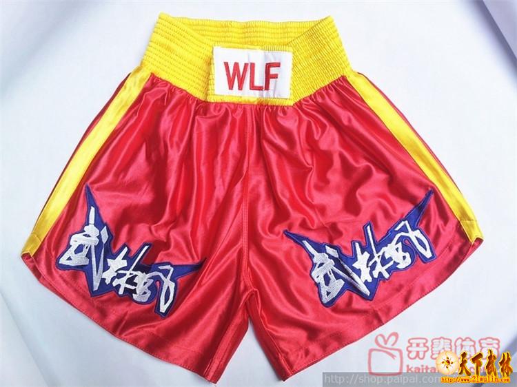 正品 武林风比赛专用散打短裤 泰拳裤头 散打裤头 红色绣字款