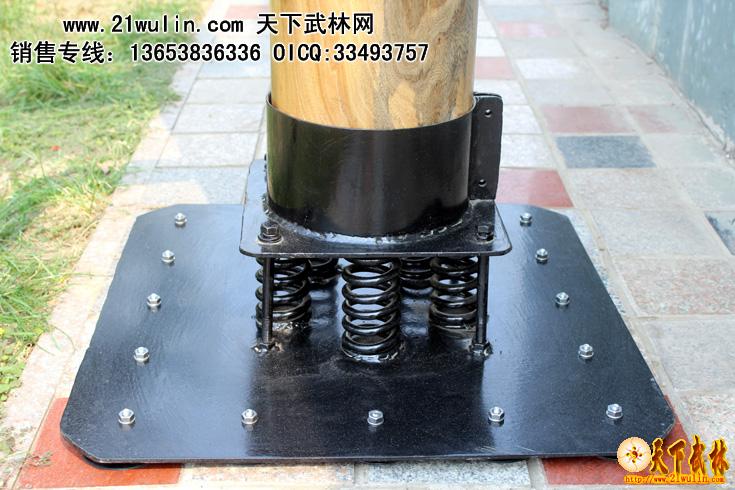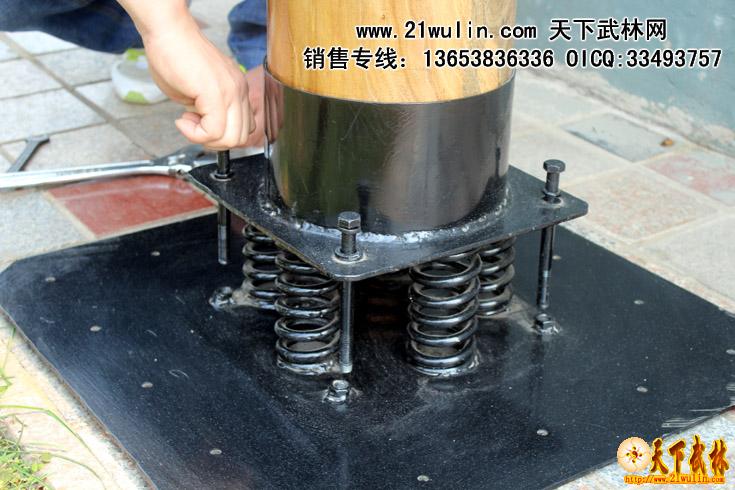 木人桩底座配5个超大扭力的专用弹簧,4个角用专用螺丝固定,如果在不想用弹簧的情况下,只须把四个角的螺丝固定好,就和传统木桩完全一样,没有一点晃动。