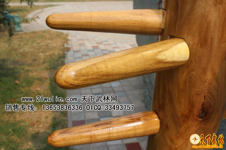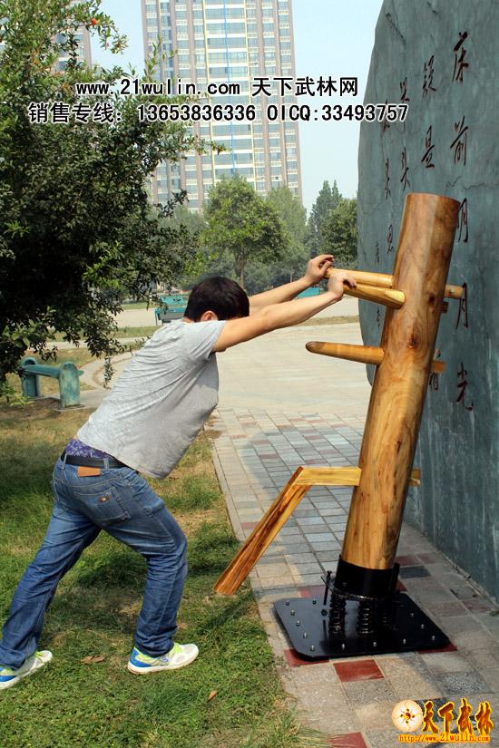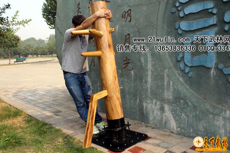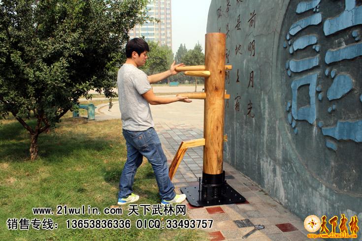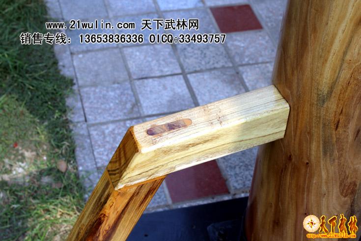 立柱式木人桩均由野生硬质木材(优质的槐木和榆木)精制而成,所有木材均经过微波干燥杀虫设备彻底烘干和杀虫处理,产品保证不开裂、不变形、不虫蛀。其造型美观,工艺精良,是武术爱好者的首选器材。木人桩是武术爱好者的练功对手和靶子,特别适合单人练习,能使使用者功力增进迅速,命中率和击打份量明显提高。是单人练功的必备器材。立柱式木人桩适用于地方狭小的室内安装,四角用膨胀螺栓固定在地面上。
