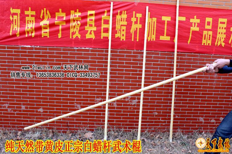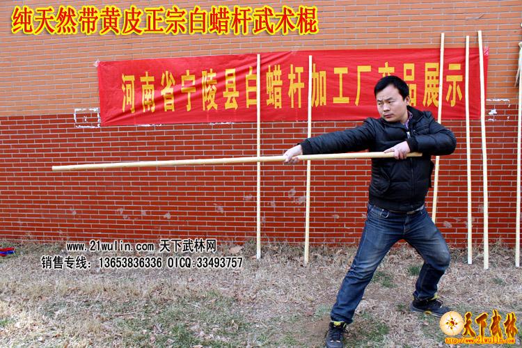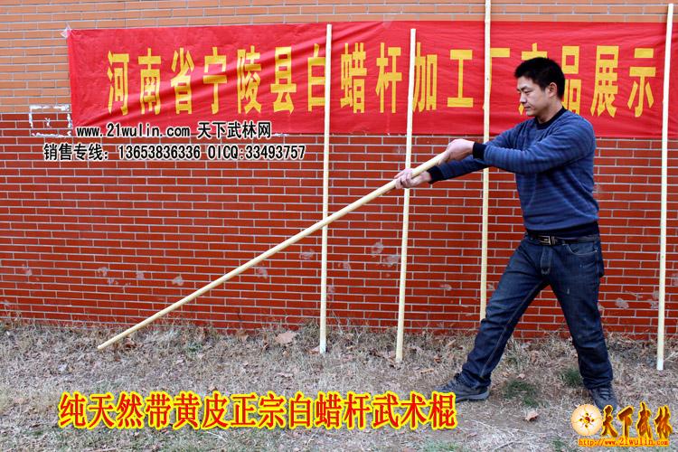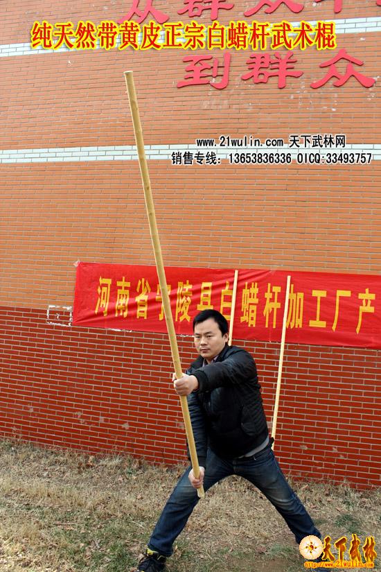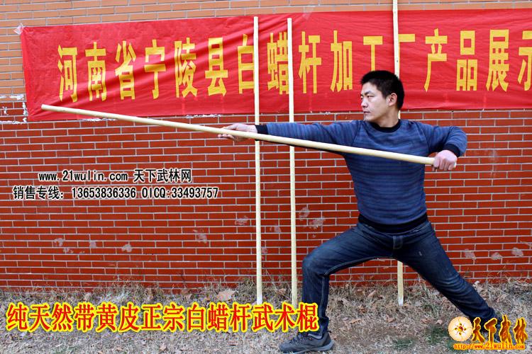 河南省宁陵县白蜡杆加工厂年加工各类白蜡杆在50万根以上,在用做武术器械中长年与各类武术院校及全国知名武术家建立良好的合作关系,宁陵白蜡杆武术棍(枪)的市场占有率在60%以上,其中长3至5米白蜡杆为太极大杆、抖杆、大枪等训练表演专用器械,独家生产的选用整段实木为源材料,全为一体、近乎正圆的纯实木实心太极球系列产品更是风靡武林,已有十多位武术名家在各类武术教学影片讲解演练中使用本产生产的武术器械,充分展示了我厂产品的一流品质。2006年邀请我国著名武术家、《中华武术展现工程》总监---武世俊大师为本厂形象代言人技术顾问、“第一、二届世界传统武术节”、“2007功夫之星全球电视大赛”为国家规定套路的棍术和枪术比赛专用器械、2008年春节晚会舞台上少林弟子使用本厂的武术棍,高难度的表演了“人在棍上翻”的动作给观众留下了深刻的印象,充分展现了白蜡杆坚而不硬、柔而不折的优良品质和我厂的雄厚实力!