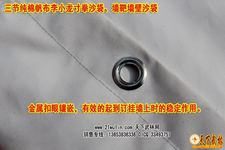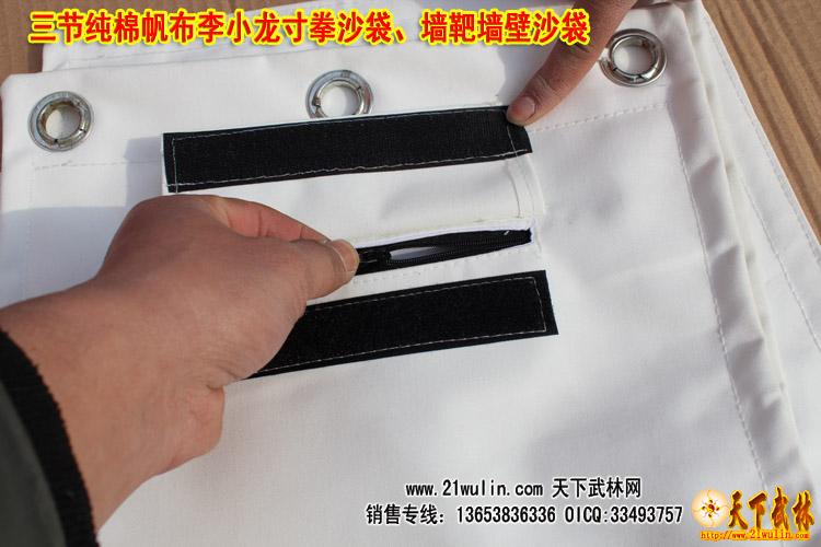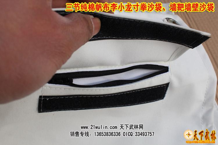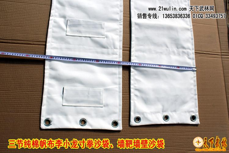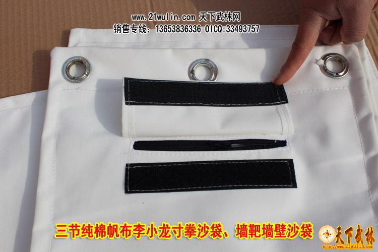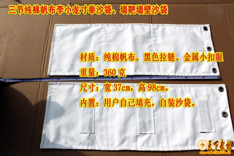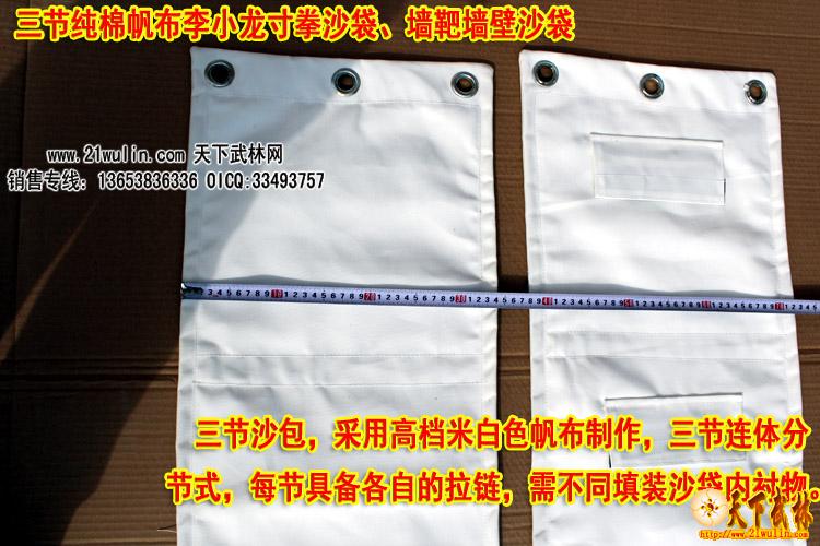 简介:三节沙包,采用高档米白色帆布制作,三节连体分节式,每节具备各自的拉链,需不同填装沙袋内衬物。周圈以12个金属扣眼镶嵌,有效的起到订挂墙上时的稳定作用。此沙袋运输、携带方便,就地取材用黄沙、绿豆、铁砂、大米等各类填充物均可使用。非常适合各种自由搏击项目上段、中段、下段拳法和腿法的训练使用。