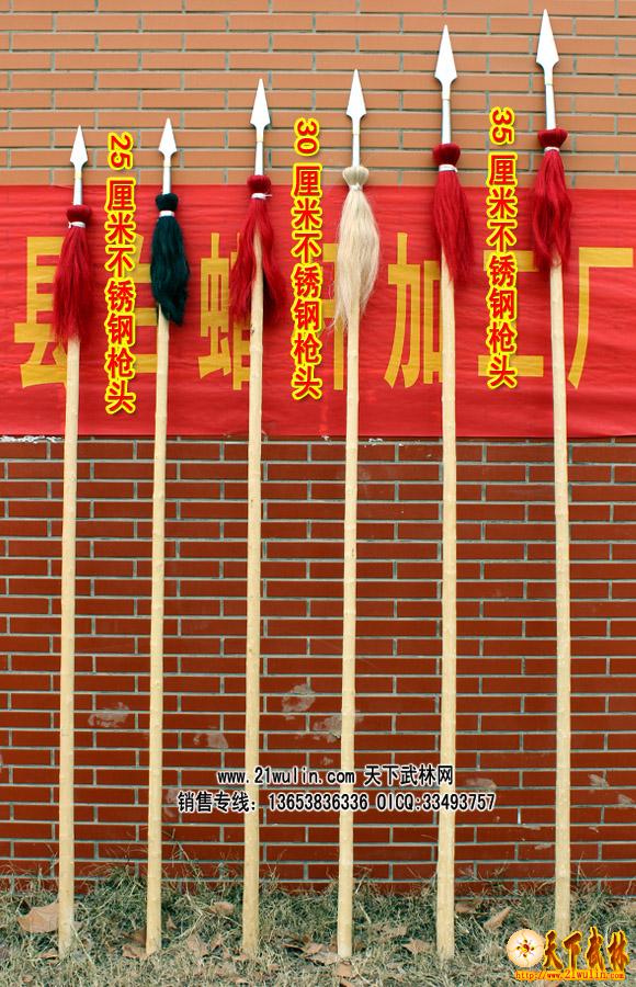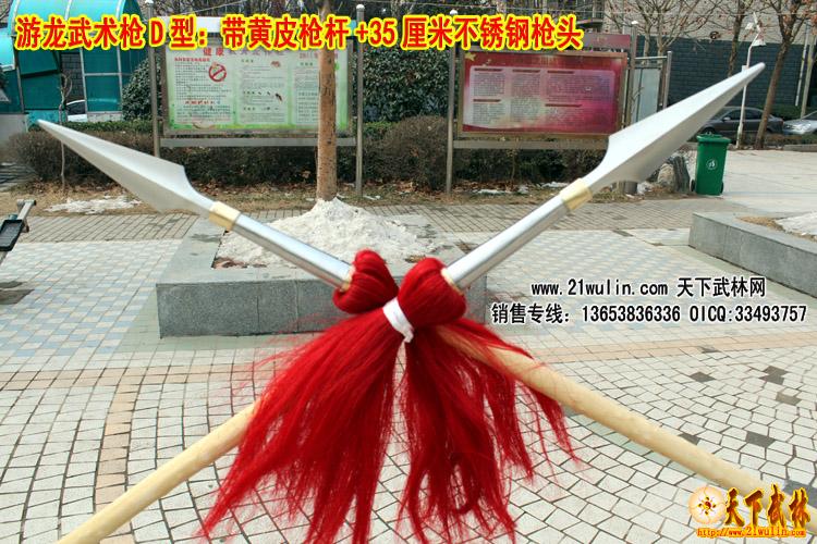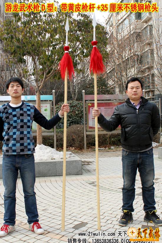 上图为安装好的游龙武术枪D型,从左到右依次为一、游龙武术枪D型:带黄皮枪杆+25厘米不锈钢枪头,二、游龙武术枪D型:带黄皮枪杆+30厘米不锈钢枪头,三、游龙武术枪D型:带黄皮枪杆+35厘米不锈钢枪头