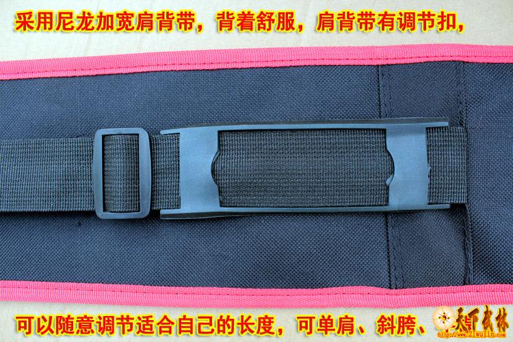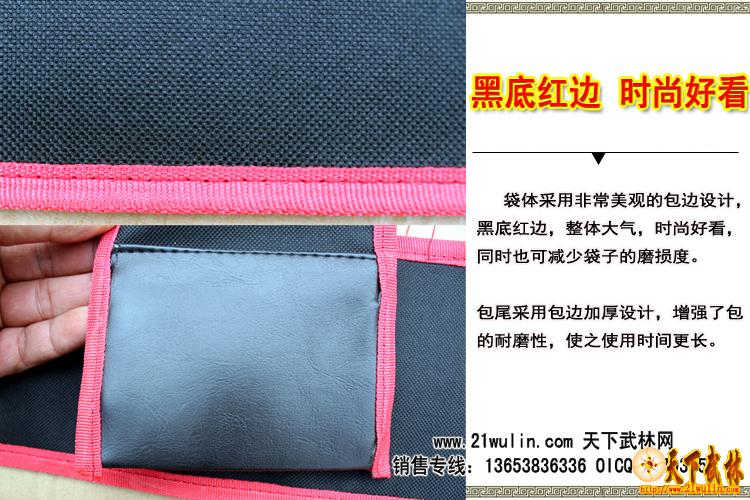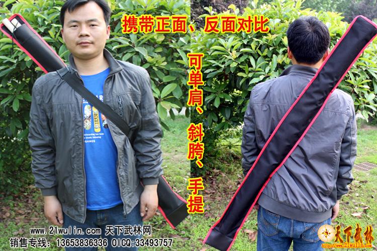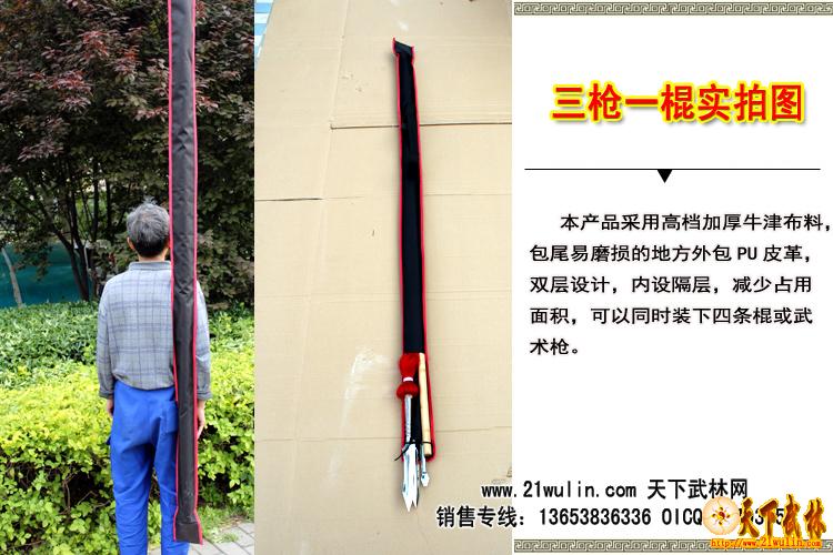 本产品采用高档加厚牛津布料,包尾易磨损的地方外包PU皮革,双层设计,内设隔层,减少占用面积,可以同时装下四条棍或武术枪。采用尼龙加宽肩背带,背着舒服,肩背带有调节功能,可以随意调节适合自己的长度,可单肩、斜胯、手提。整体做工精细,经久耐用。材质经,美观耐磨,防水防尘易清洗。