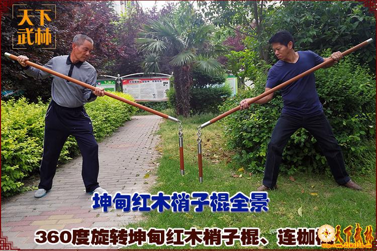 坤甸红木梢子棍连枷棍盘龙棍双节棍武术棍少林棍360度旋转兵器