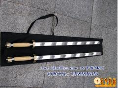 不锈钢双鞭 双锏/梅花双鞭古怪兵器-武术表演道具/铜护手 品名:双鞭 材质:不锈钢 长度:89厘米 直径:2.9厘米 重量:3斤左右(一对) 古代兵器之一,亦作简。武术短器械。锏因其外形为方形有四棱,形状相同,因得其名。锏为铜或铁制,长为四尺。锏由锏把和锏身组成。 |