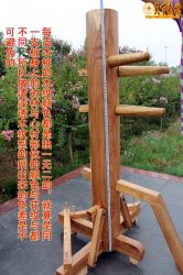 关于天下武林网的木人桩: 立柱式木人桩均由野生硬质木材(优质的槐木和榆木)精制而成,所有木材均经过微波干燥杀虫设备彻底烘干和杀虫处理,产品保证不开裂、不变形、不虫蛀。其造型美观,工艺精良,是武术爱好者的首选器材。木人桩是武术爱好者的练功对手和靶子,特别