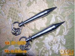 锤可配链子或绳。纯黄铜流星锤每个70元, 邮资5元,特快15元。 中国传统武术软器械之一。又名流星锤、飞锤或走线锤。其起源可以追溯到远古时代,那时人类用藤索系上石球制成飞石索,在狩猎时抛出,以便缠住大兽的四肢。 流星锤有单流星和双流星两种。单流星绳索长约15尺