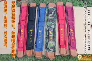 名 称:新款实用双层带棍包刀剑包 材 质:高级牛津布+加厚人造革 规 格:长度110厘米,高度11厘米,宽度13厘米。 结构及功能:该刀剑袋由主器械袋、暗袋、副器械袋和储物袋组成。 主器械袋放置刀和剑;(可同时放刀和剑) 暗袋放置手机、钥匙和皮夹等; 副器械袋放置功