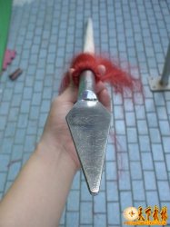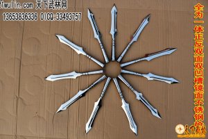 大枪头:全为一体正反双面双凹槽镜面不锈钢枪头,中间没有经过任何焊接,是整个纯不锈钢柱体经数控车床磨制而长,外观造型简洁大方美观,线形层次感强,枪头风格威风凛凛,典雅奢华、光彩照人,经久耐用、总长36厘米,重1斤。