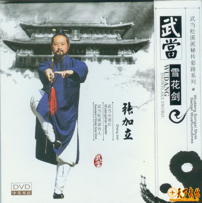 武当雪花剑——张加立 内容简介:“武当雪花剑”具有步走八卦,腰如太极,剑似蛇形的显著特点。其步法左旋右转,环转无端似行云流水;其剑法金蛇狂舞,点刺挂撩穿抹云扫,变幻莫测。动作刚柔相济,缓急相兼,时而快若闪电,时而缓若行云,轻灵圆活,潇洒而飘逸。前人有歌赞曰:“翻天兮惊飞鸟,滚地兮不沾尘。一击之间,慢若清风不见剑;万变之中,但见剑光不见人。”