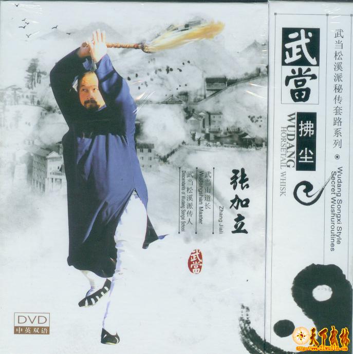 武当拂尘——张加立 内容简介:“武当拂尘”为道家法器之一,是道家清净云游之物,也是防身器具。其动作刚柔相济,缓急相间,舒展圆活,潇洒飘逸。该套路演练起来势势相承,如长河飞瀑,环环相扣;又似行云流水,时而如游龙在天,时而似清风拂柳,时而如急风闪电,令人眼花缭乱,目不暇接,叹为观止。