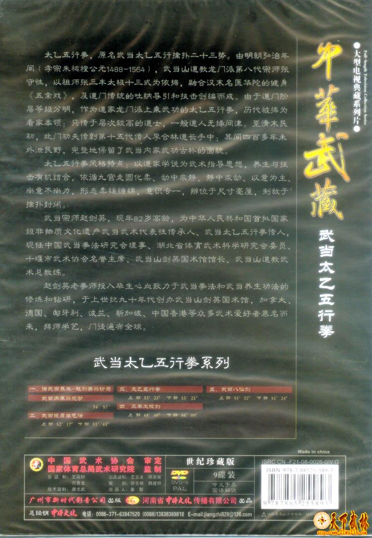 原装正版 中华武藏 《太乙五行拳 9DVD 》赵剑英---世纪珍藏版系列,背面介绍。