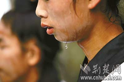 做完早功课,汗水湿透衣背的道人们又出现在演舞场上。看:
