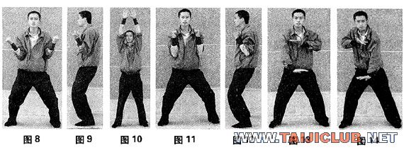 练习要点:1、要以身体的拧转来带动双手发力。2、双肩的下沉与上提幅度不可太大。3、双手的上提与下按要同时进行,动作要快,发力要短促。4、意念双手用力将一根绳子拽断。